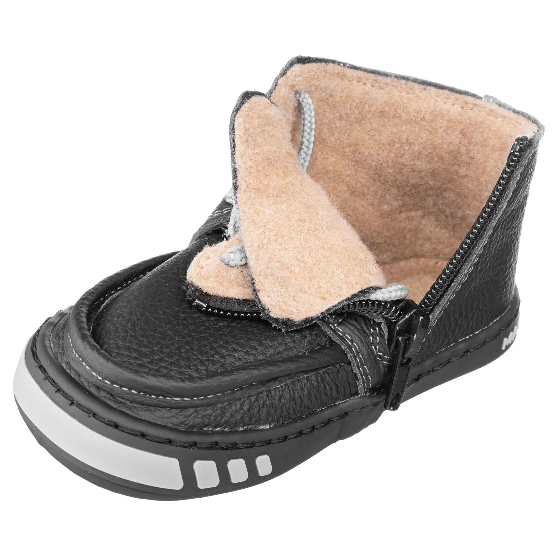 Aceste ghete barefoot imblanite pentru copii sustin dezvoltarea naturala a picioarelor copilului, pozitia corecta a corpului si ofera protectie termica. Partea superioara din piele daca este impregnata corespunzator, protejeaza impotriva conditiilor meteorologice neplacute, in timpul activitatilor de iarna in aer liber. Sunt ultra-flexibile, produse in Polonia in serie limitata si se afla in Top 10 ghete barefoot imblanite pentru copii in Europa, fiind foarte renumite si in Statele Unite ale Americii.