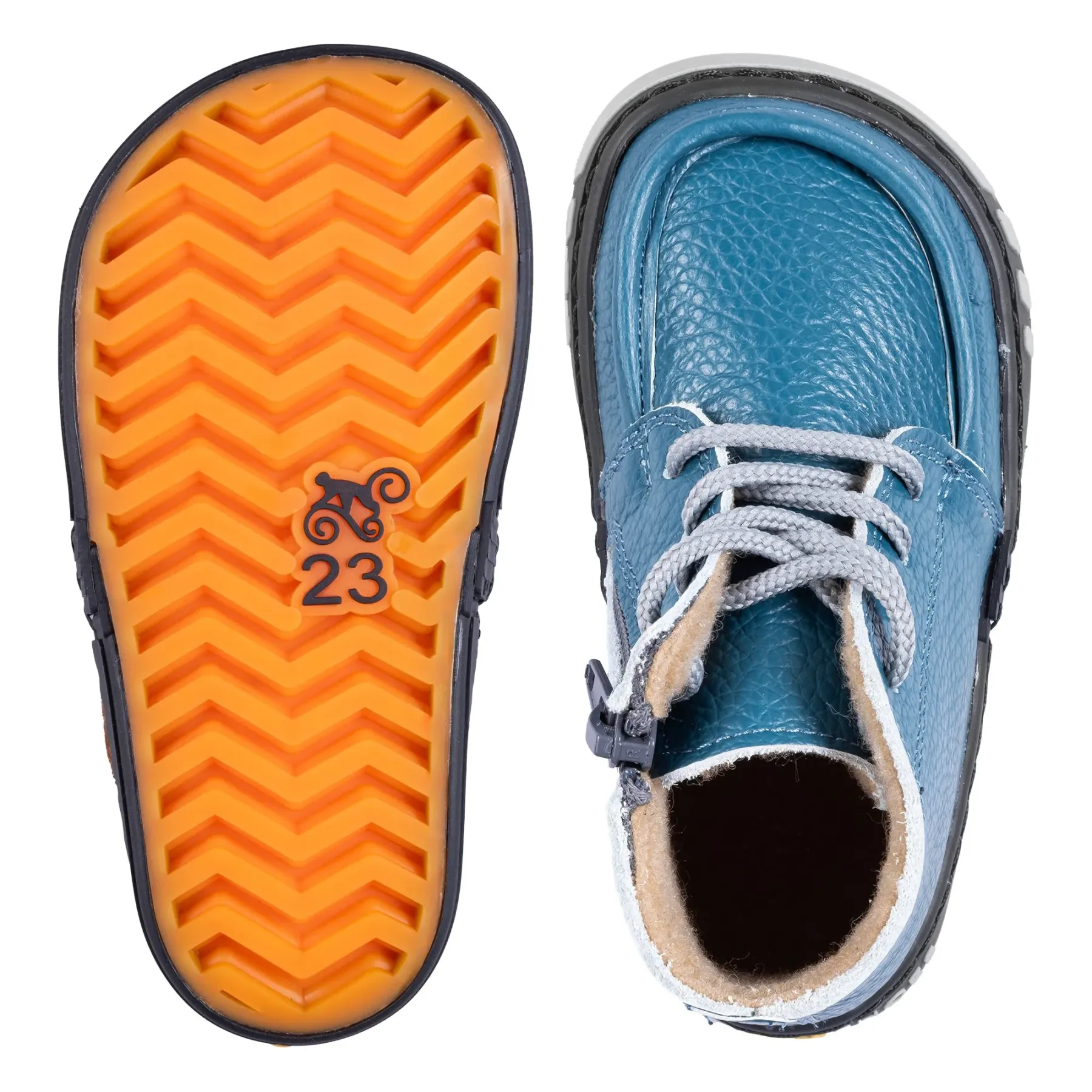 Aceste ghete barefoot imblanite pentru copii, (mers descult) pot fi purtate in cea mai mare parte a anului cand vremea este racoroasa. Ghetele barefoot imblanite pentru copii modelul MANUL pot fi purtat cu succes primavara, toamna, la inceputul iernii, iar in regiunile mai calde ale lumii, ghetele barefoot copii pot fi purtate toată iarna. Se vor potrivi bine ca primele ghete barefoot pentru copii care tocmai au început sa mearga, precum si pentru cei care pasesc deja cu incredere prin lume. Ghetele barefoot copii modelul Manul au un fermoar care le face usor de incaltat. Trebuie sa ajustati sireturile o singura data si apoi sa utilizati doar fermoarul. Cat de mult timp si nervi v-ar putea economisi? Ghetele pentru copii Manul pot fi alegerea ideala pentru zilele mai reci datorita fermoarului, captuselii de lana naturala si talpii anti-alunecare.