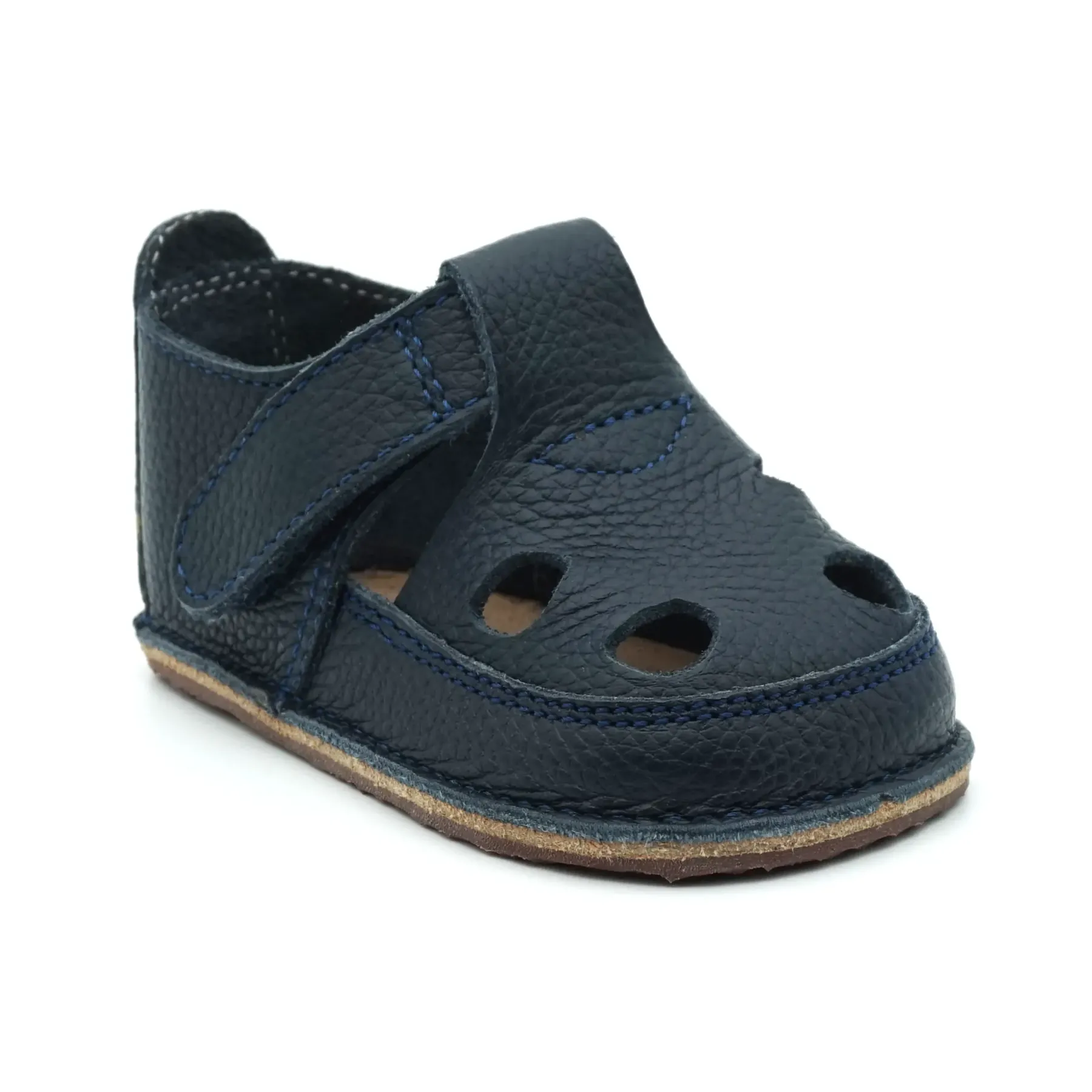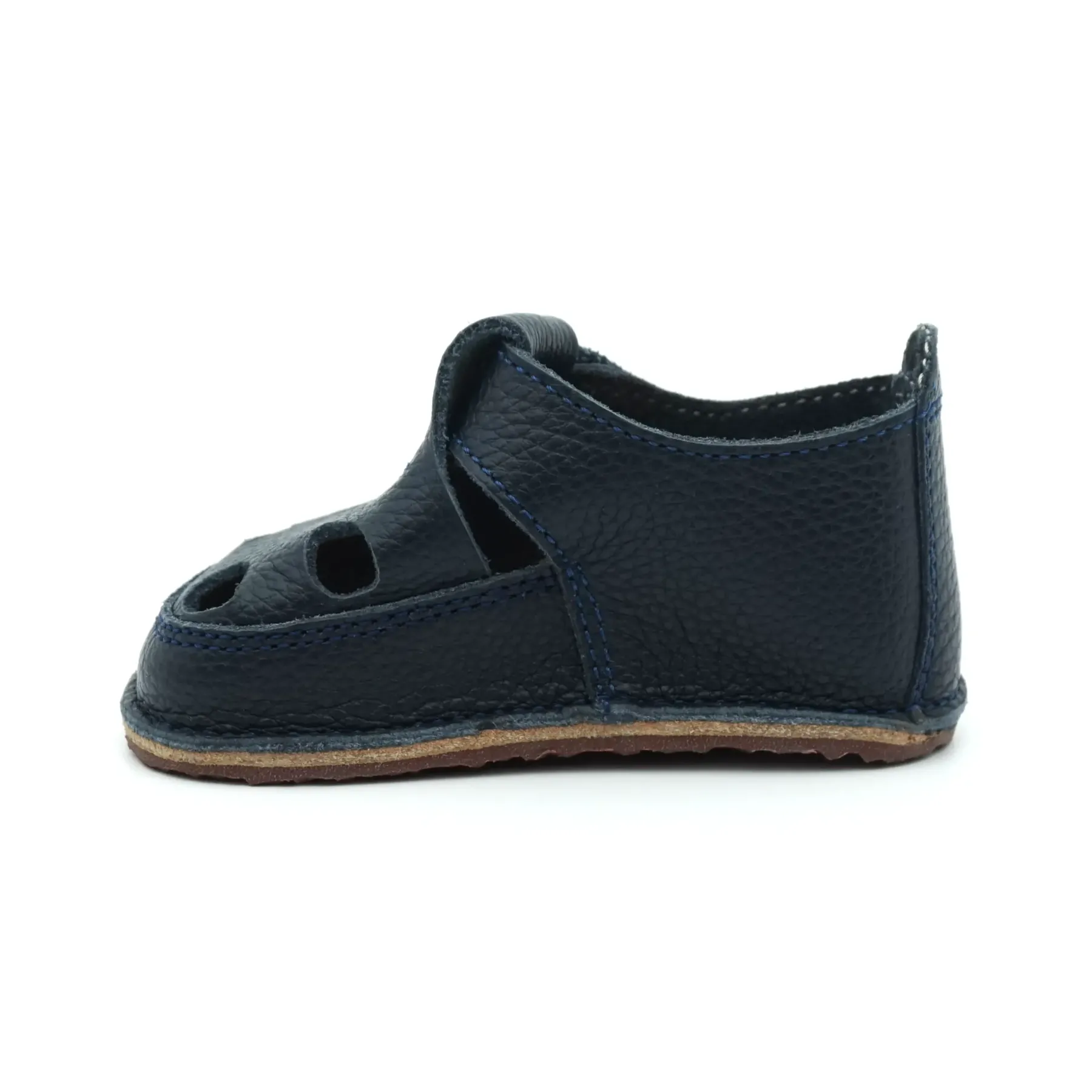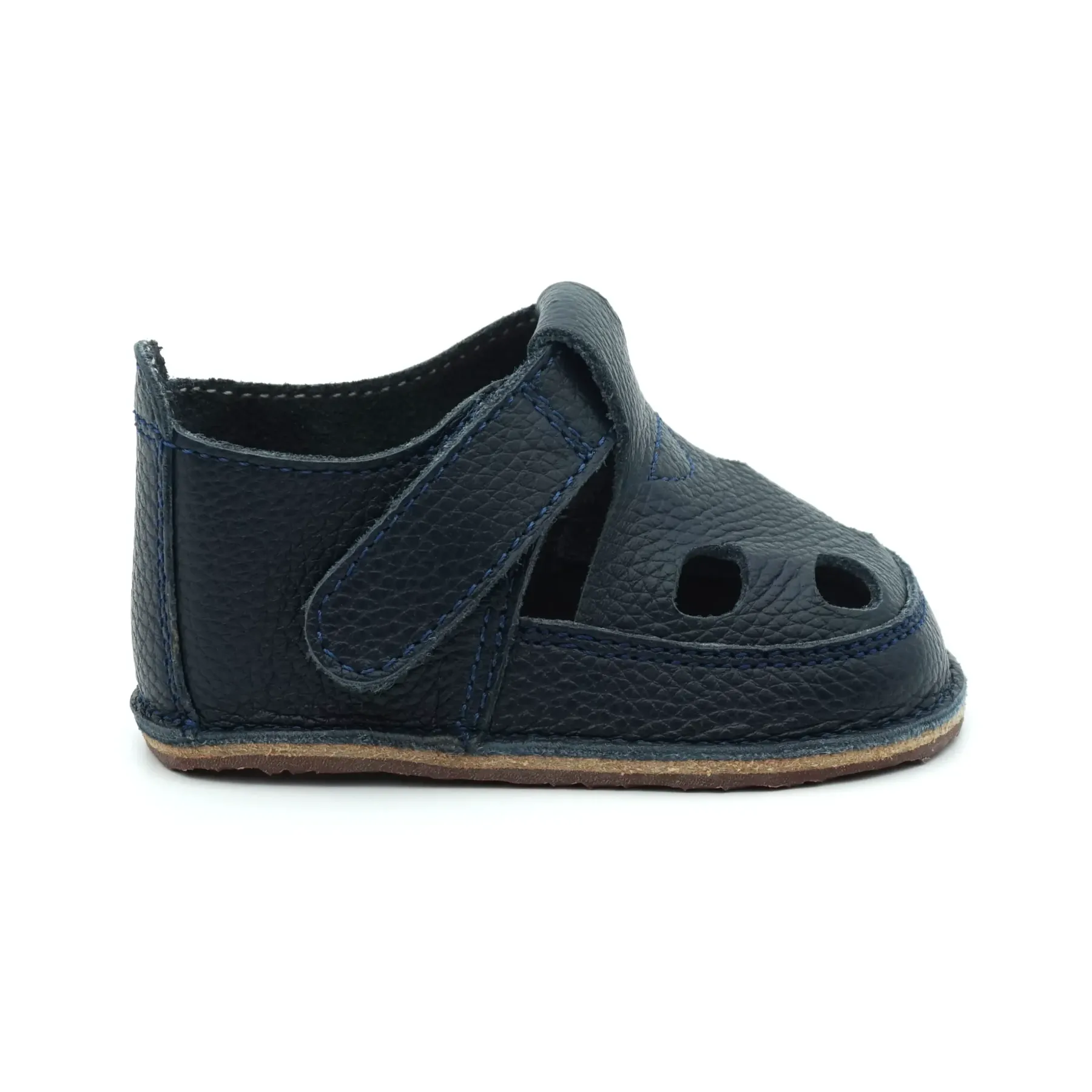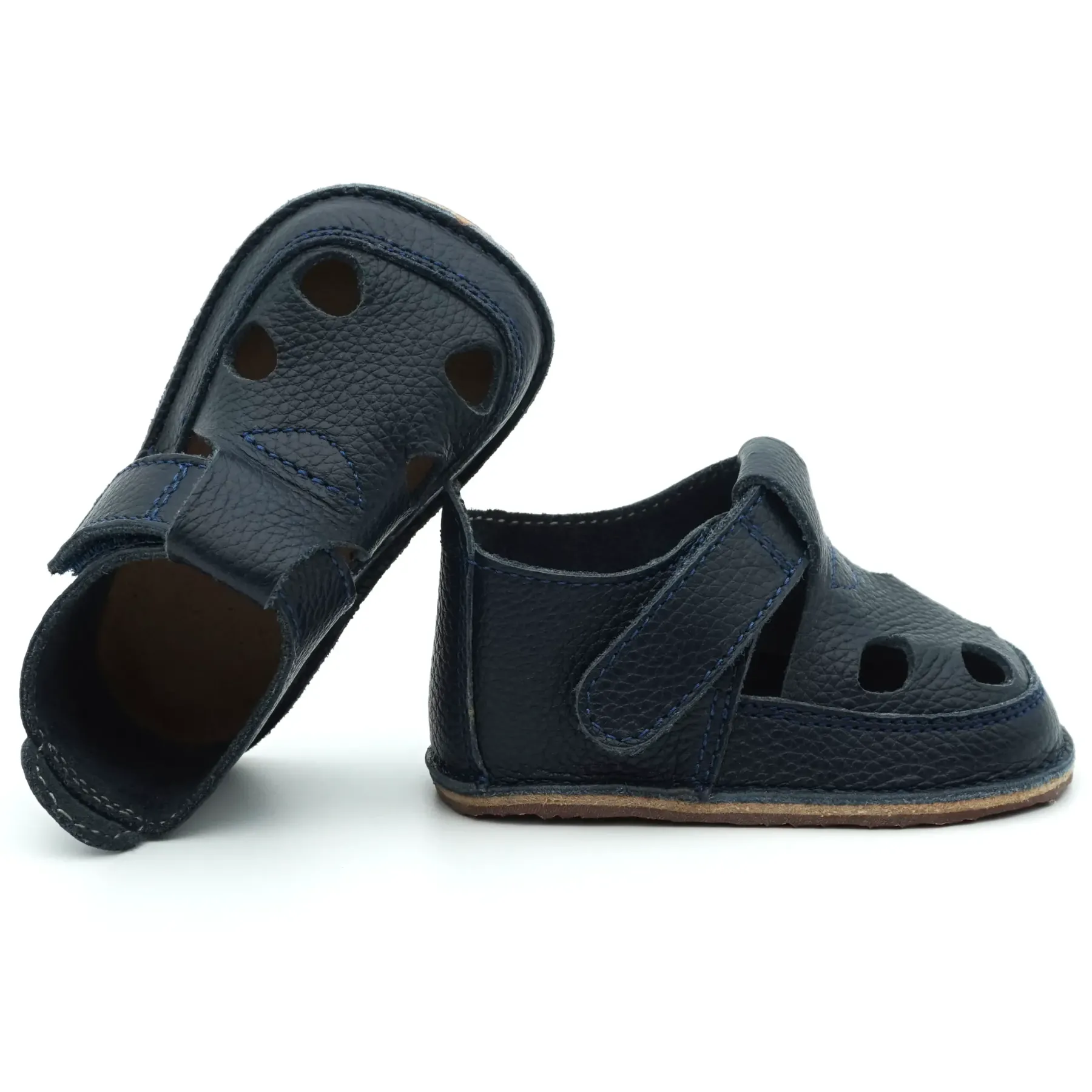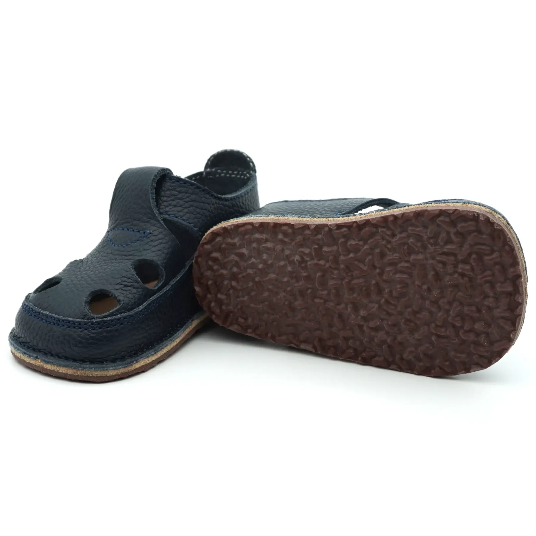 Aceste sandale barefoot bebelusi primii pasi si copii cu un design nou, elegant si modern, sunt confectionate in Romania, din piele naturala de cea mai buna calitate provenita din Italia. Talpicul este din piele tabacita vegetal, iar talpa este din cauciuc ultraflexibil si antiderapant, caracteristici pe care trebuie sa le indeplineasca orice papucei primii pasi. Pielea este atat de moale, talpa atat de flexibila si cutia pentru degetele este atat de incapatoare, incat aceste sandale copii primii pasi bifeaza toate caracteristicile unei sandale copii barefoot pentru bebelusi.