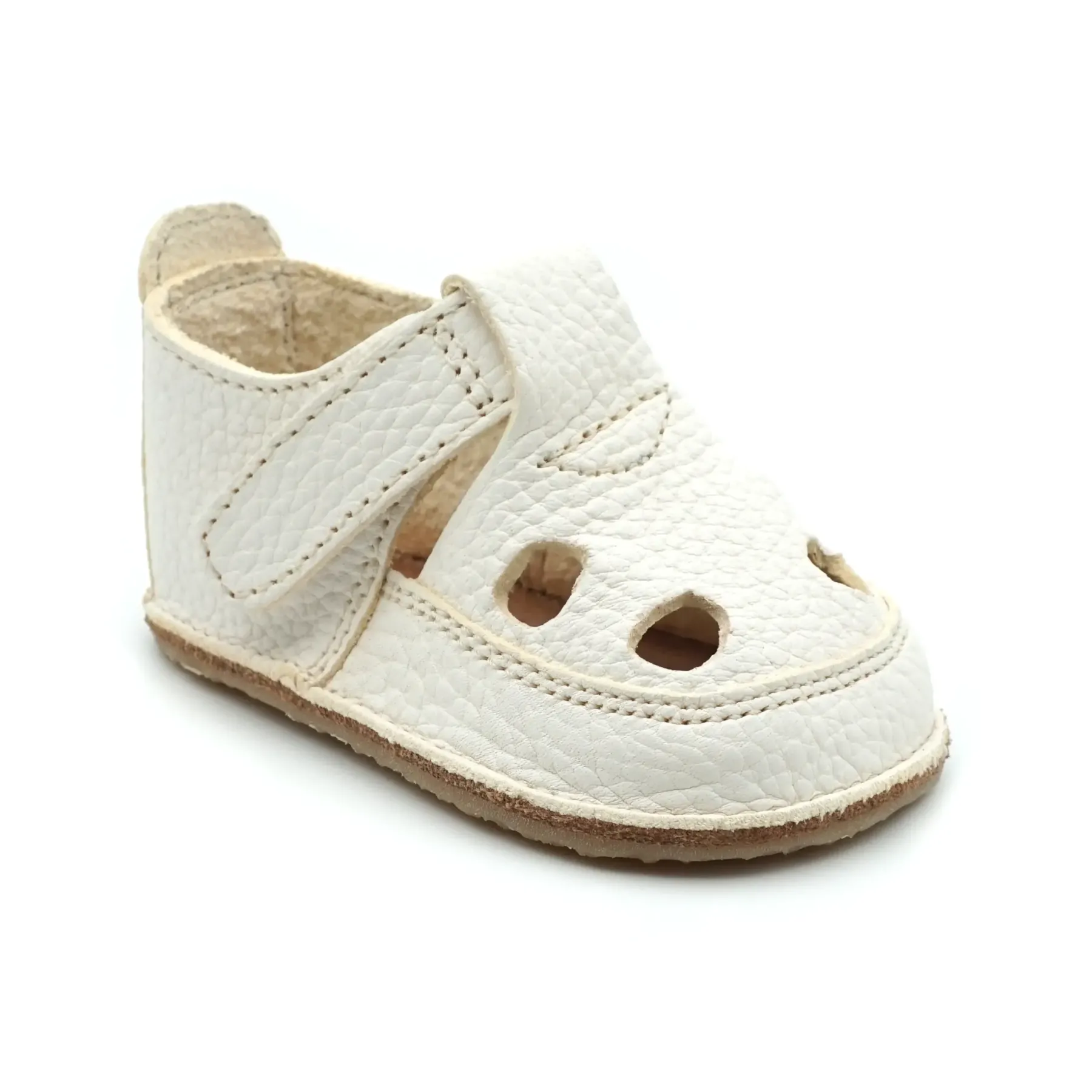 Inchiderea acestor sandale copii barefoot pentru primii pasi se face cu ajutorul unei barete cu scai, pentru a-ti mai usura putin viata ta de parinte, cand vine vorba de incaltarea copilului, iar curelusele croite si cusute elegant si liniar, au fost gandite pentru a-i oferi copilului libertate de miscare si o mai buna aerisire.