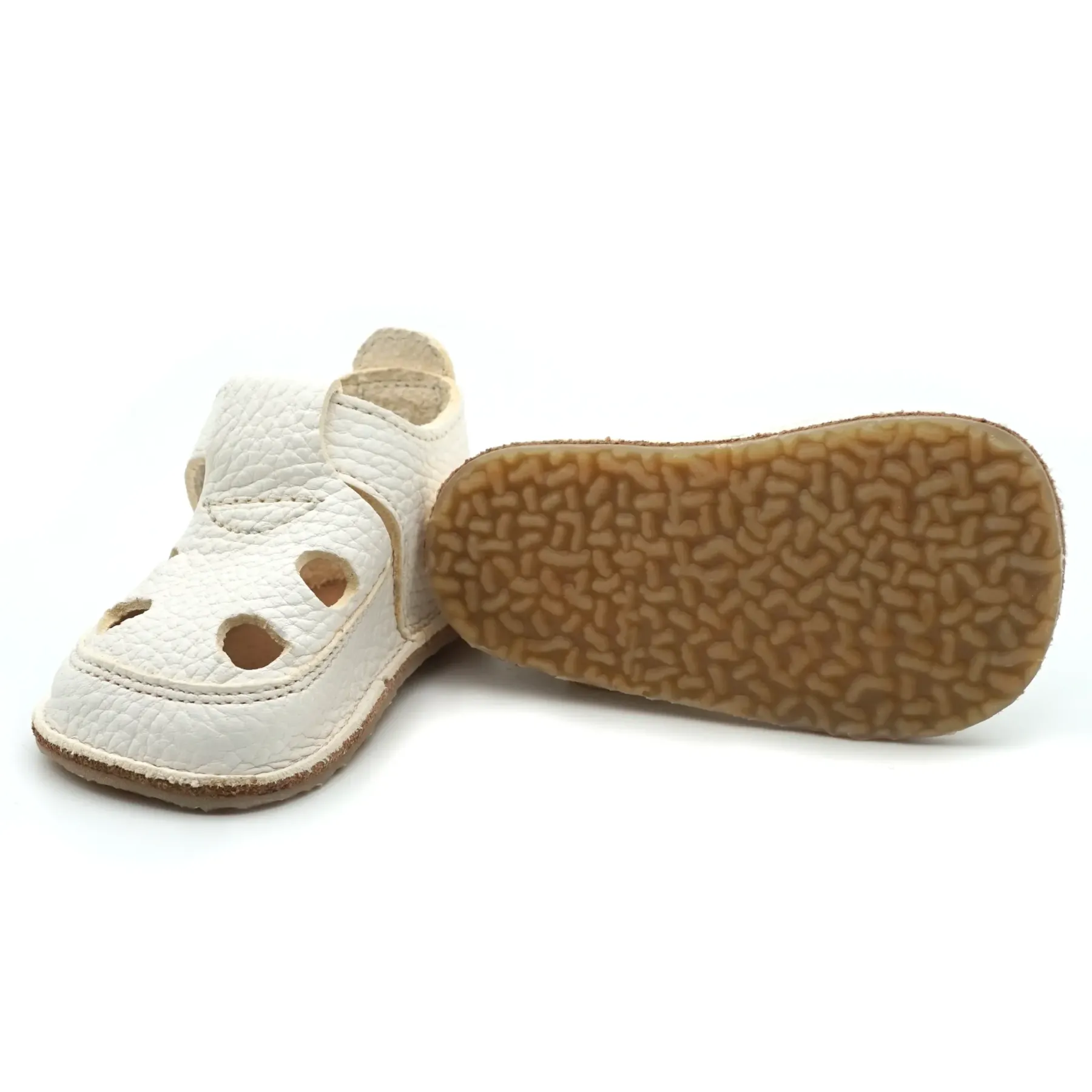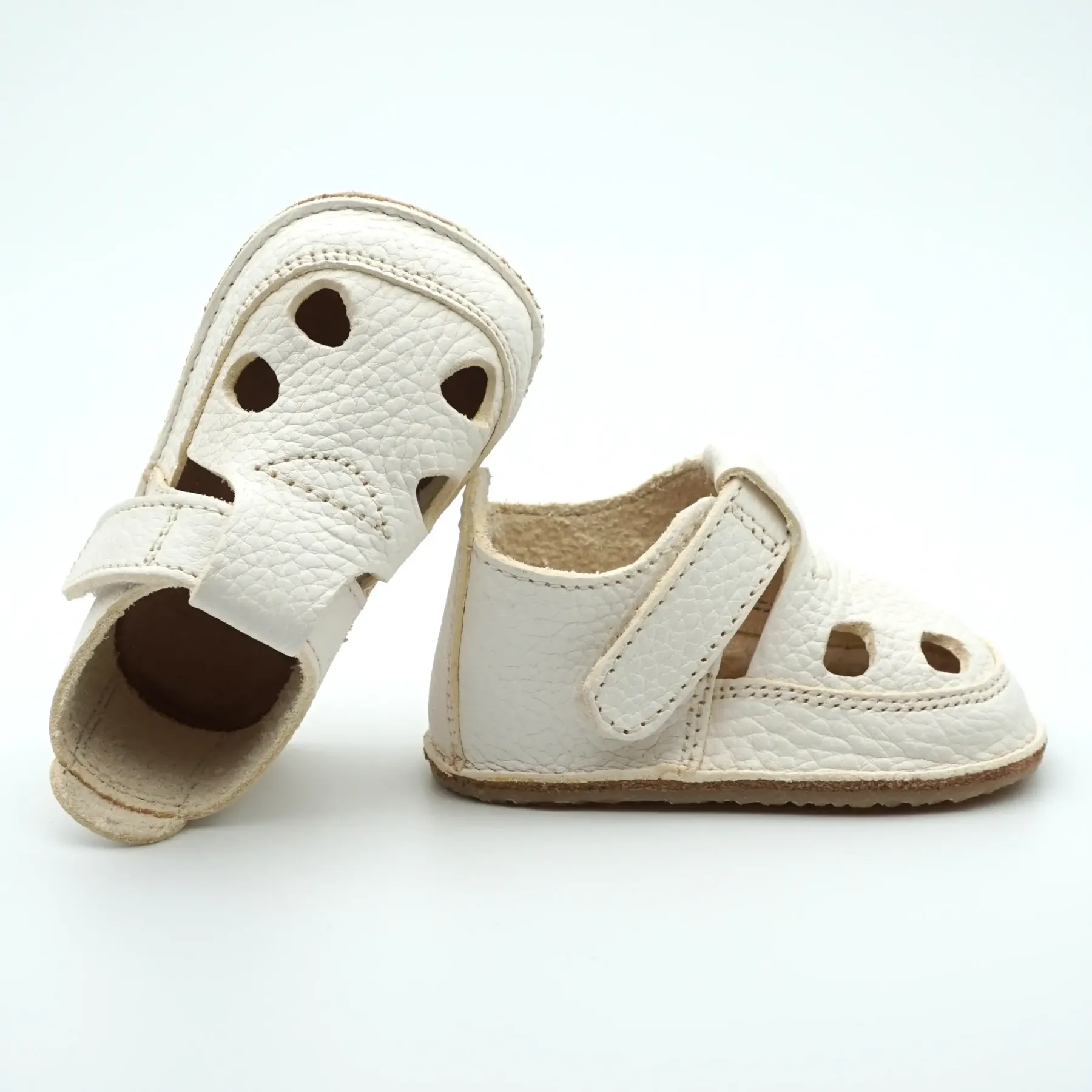 Aceste sandalute copii și bebelusi primii pasi barefoot cu un design nou, elegant si modern, sunt confectionate in Romania, din piele naturala de cea mai buna calitate provenita din Italia. Talpicul este din piele tabacita vegetal, iar talpa este din cauciuc ultraflexibil si antiderapant, caracteristici pe care trebuie sa le indeplineasca orice papucei pentru primii pasi. Pielea este atat de moale, talpa atat de flexibila si cutia pentru degetele este atat de incapatoare, incat aceste sandale bebelusi primii pasi bifeaza toate caracteristicile unei sandale copii barefoot.