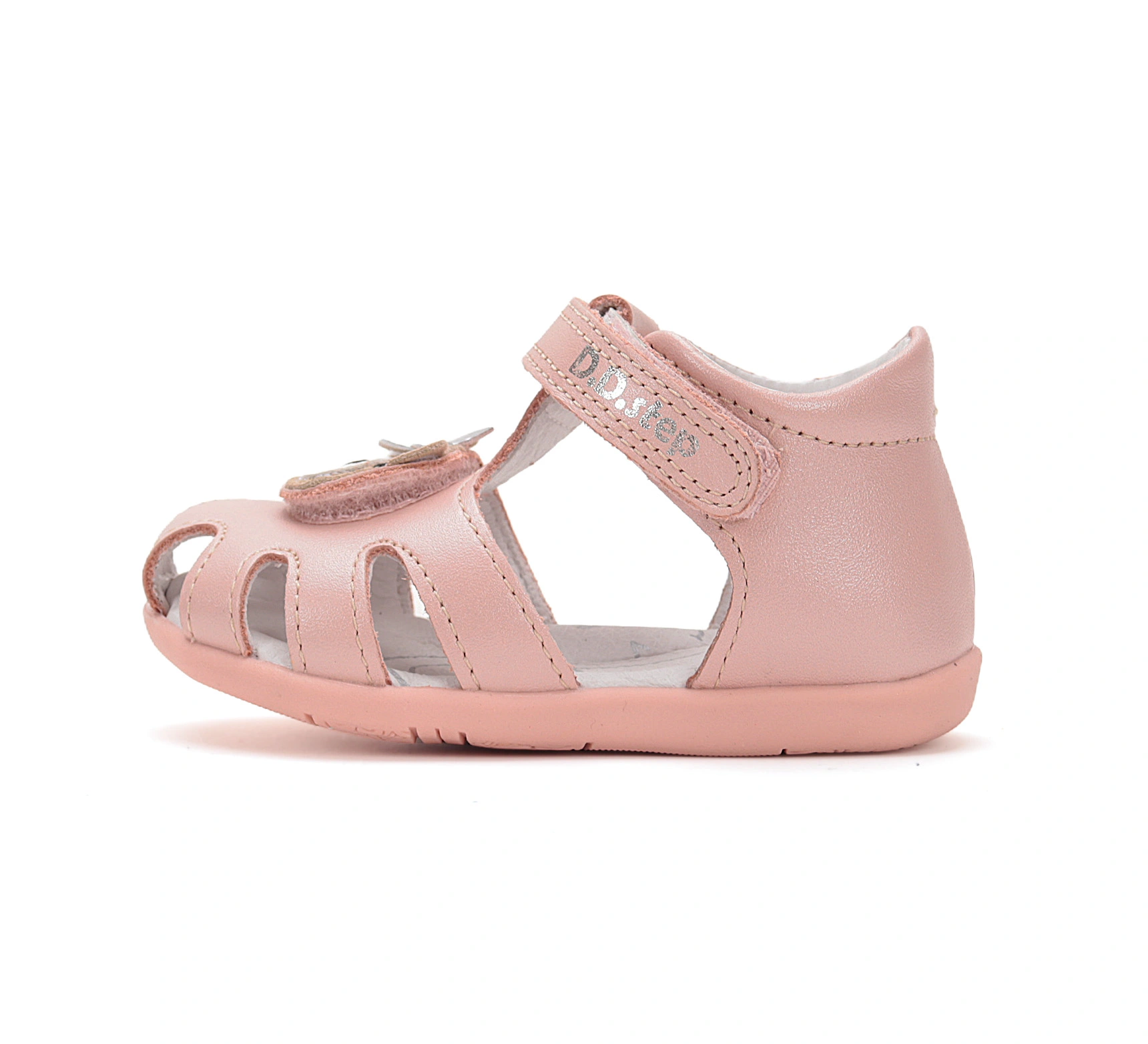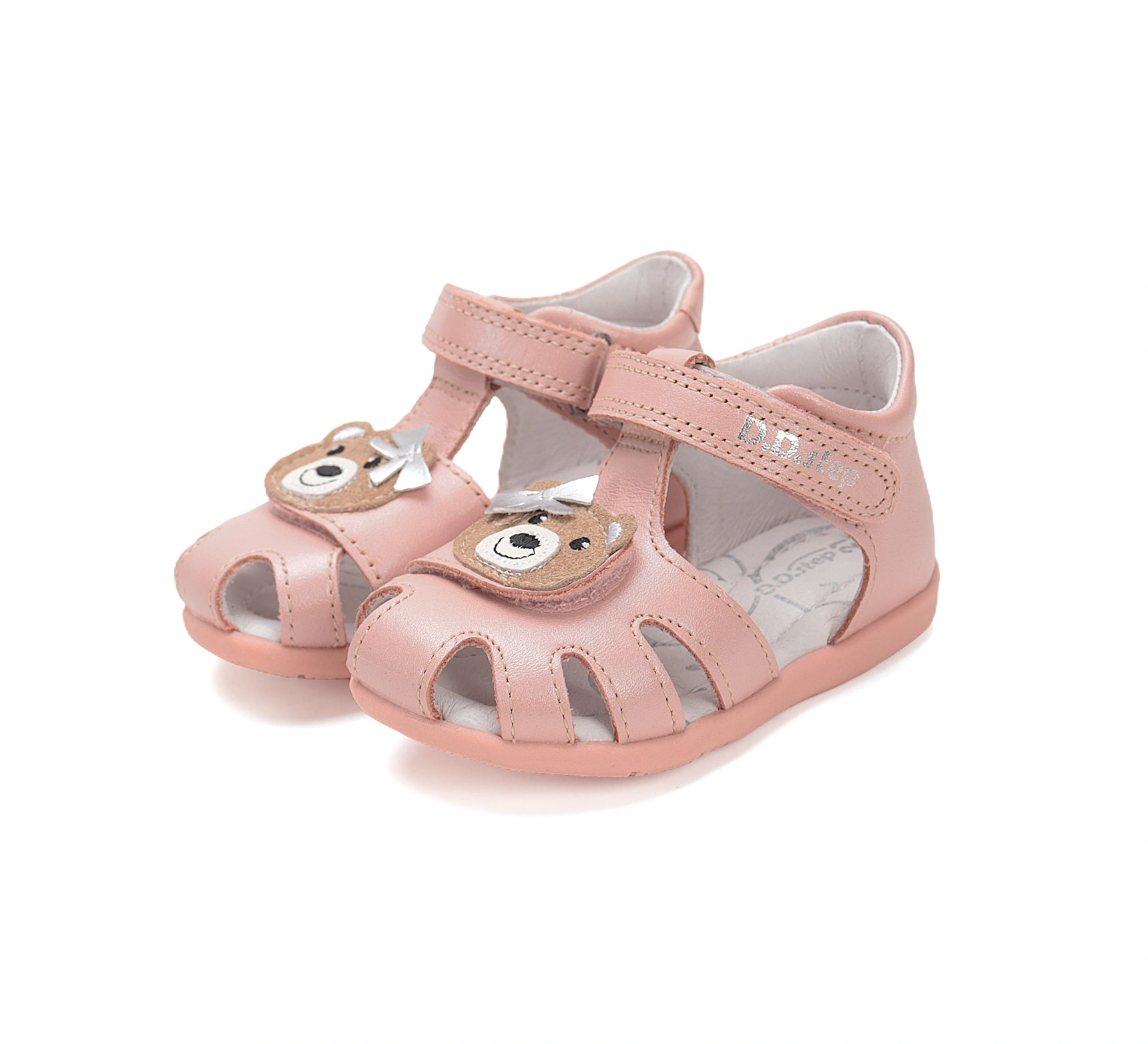 Aceste sandale bebelusi DD Step in nuanta roz pudrat sunt create cu gandul la micile printese care incep sa exploreze lumea. Decorate cu un ursulet simpatic si confectionate din piele naturala moale, aceste sandale bebelusi ofera un echilibru perfect intre confort, sustinere si stil. Designul aerisit si forma ergonomica le transforma in alegerea ideala pentru sezonul cald.